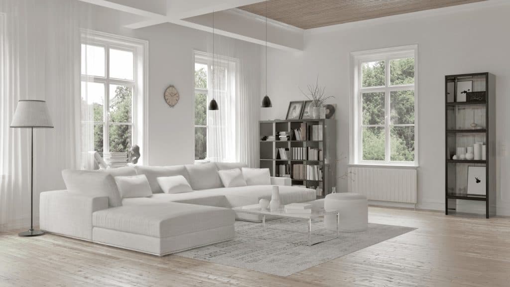 Los colores neutros como blanco, gris y beige predominan. Estos tonos crean un lienzo limpio que se puede complementar con accesorios y mobiliario en colores más audaces si se desea. Los materiales naturales, como la madera clara y el mármol, también son populares en este estilo, proporcionando una sensación de calidez y sofisticación.